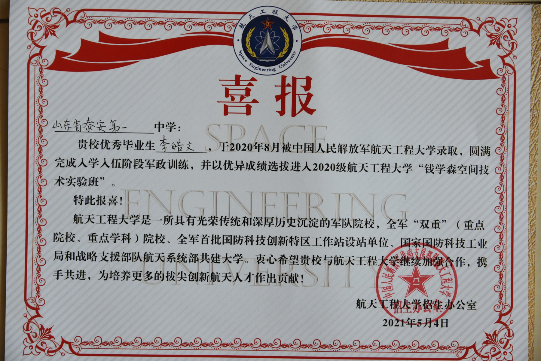 祝贺泰安一中王源鑫同学在全国青少年信息学奥林匹克竞
