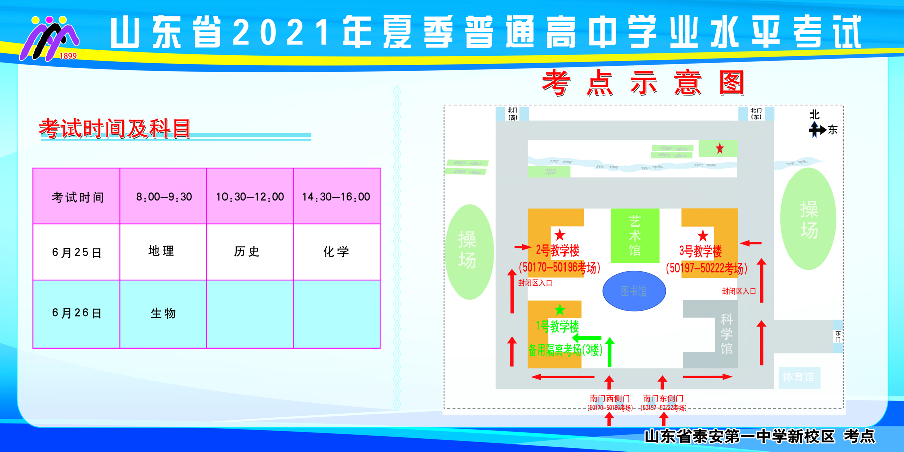 山东省2021年夏季普通高中学业水平考试泰安一中新校区考点示意图
