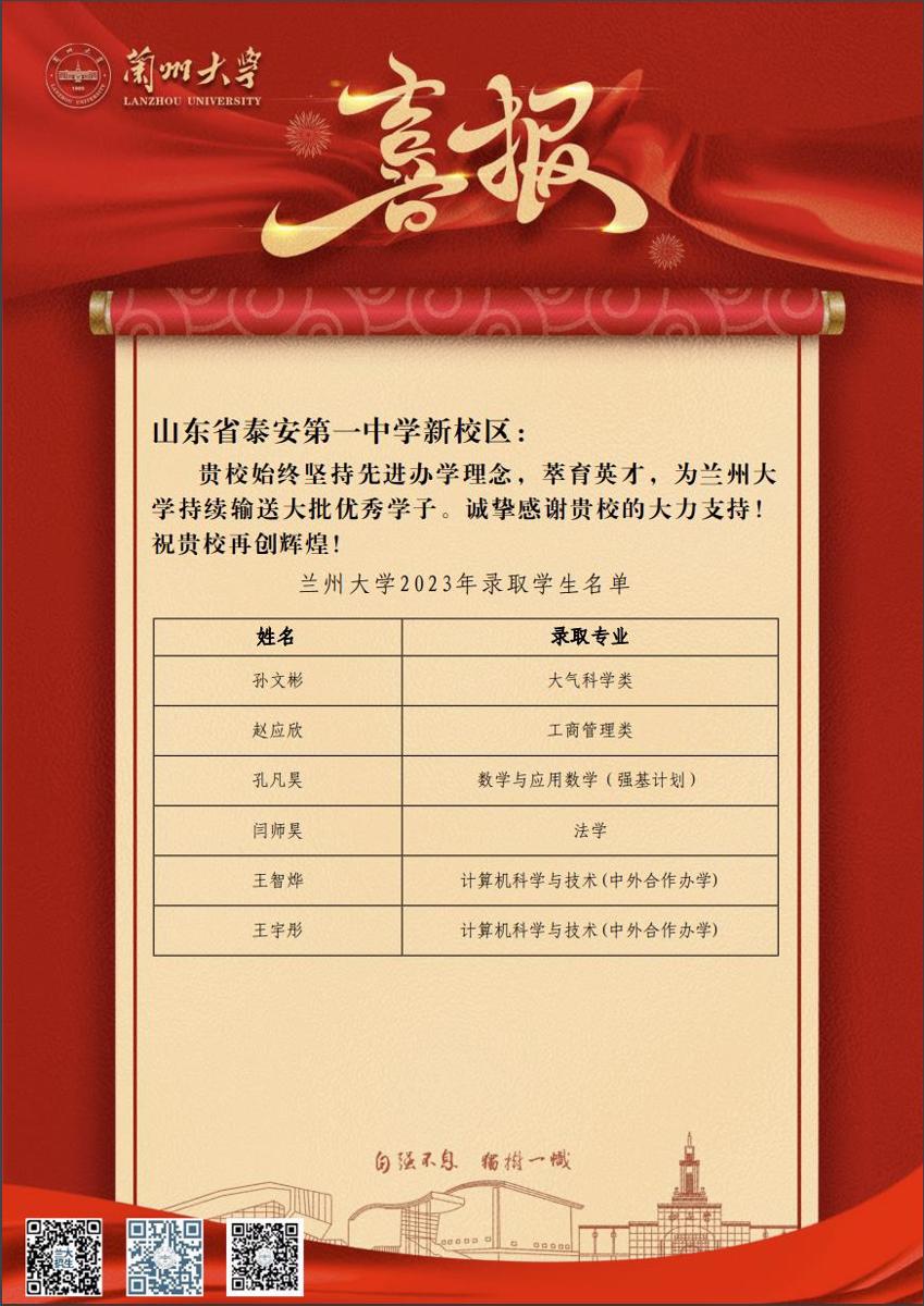 兰州大学寄新校区感谢信,对一中输送优秀生源表达感谢