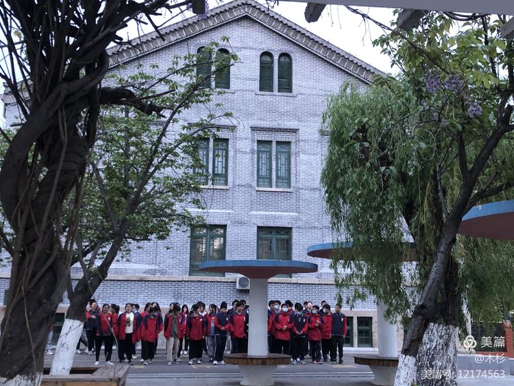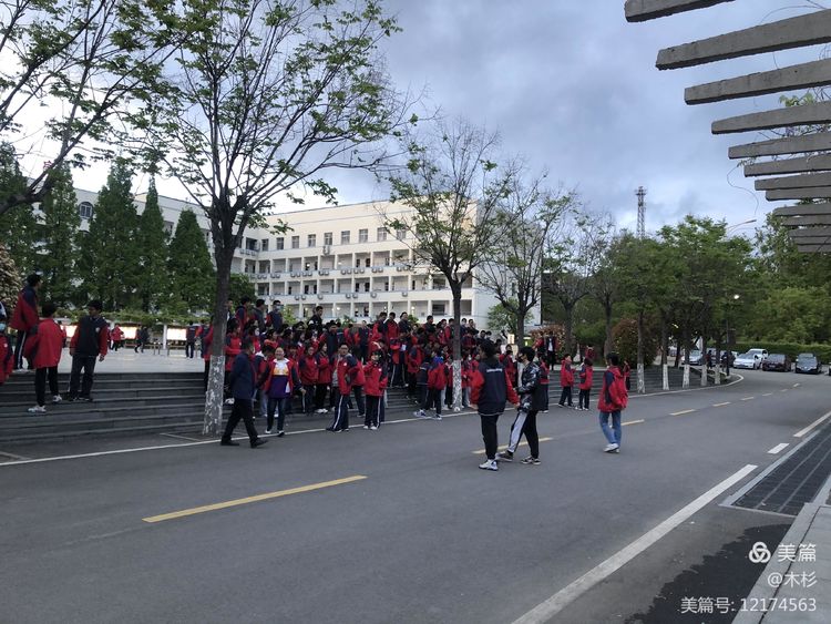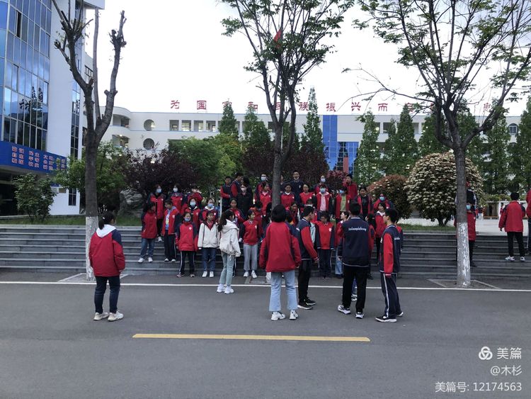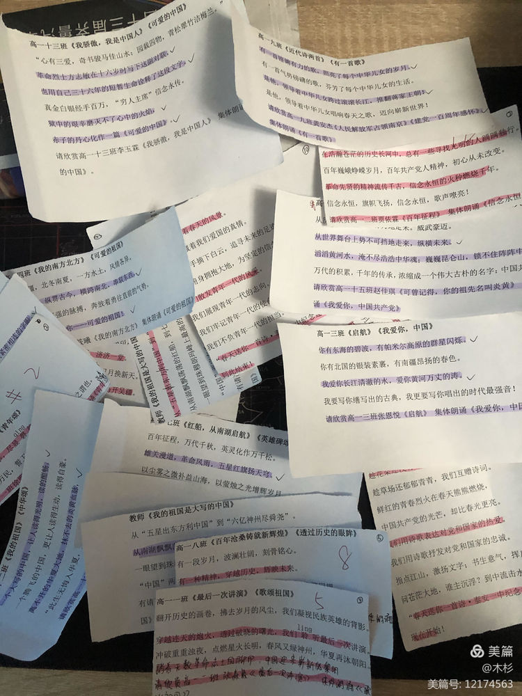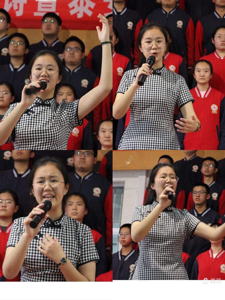 同学们热情高涨,群策群力,积极选稿、背稿、配乐,利用晚间饭空排队形,练习上下台。美丽的校园到处可见他们认真的身影。