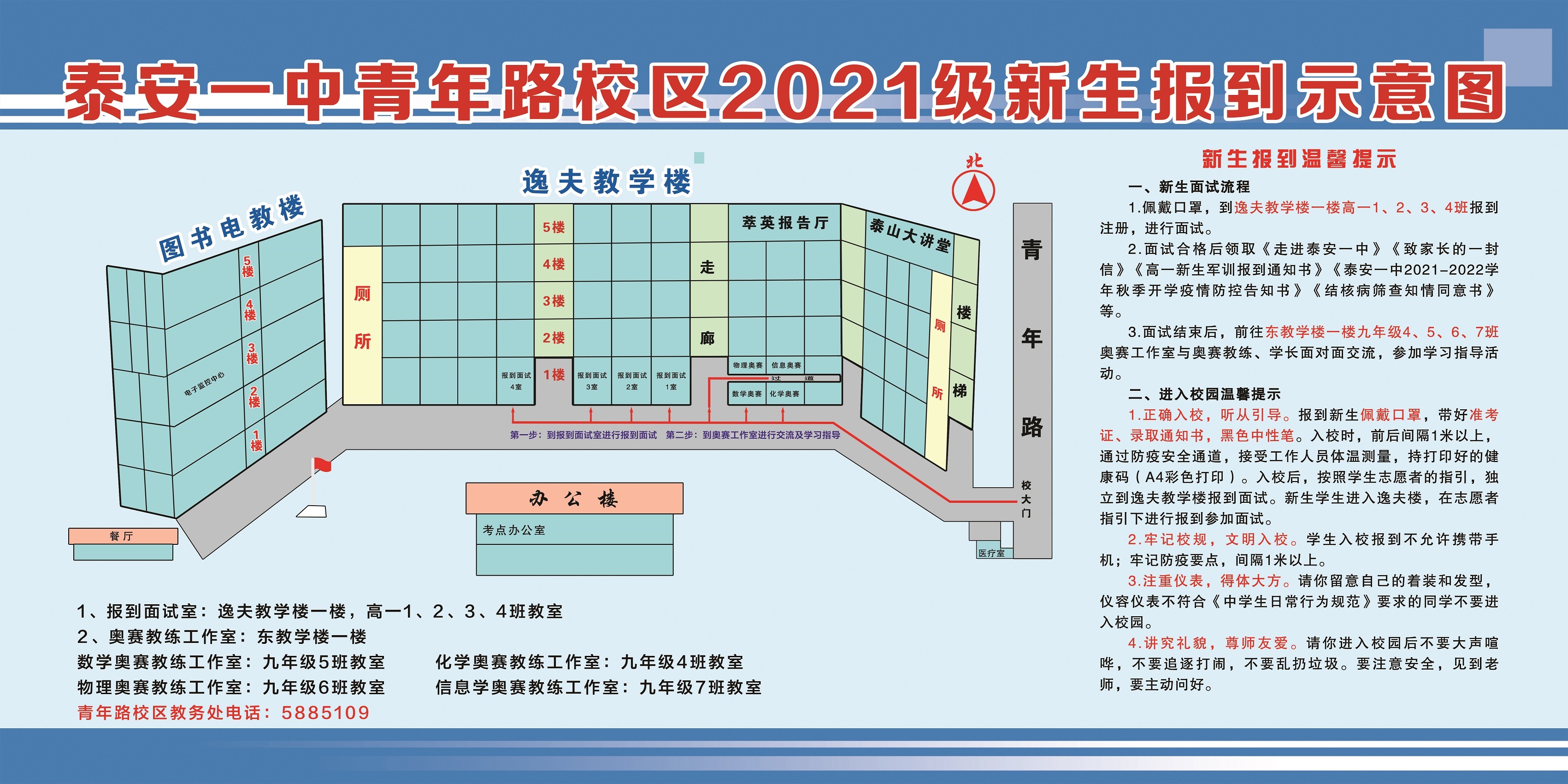泰安一中青年路校区2021级新生报到示意图
