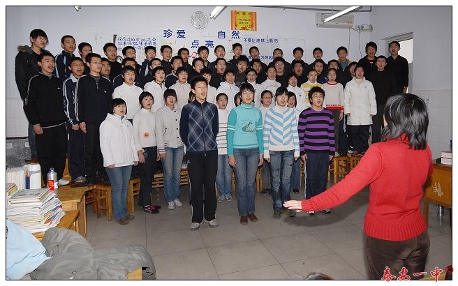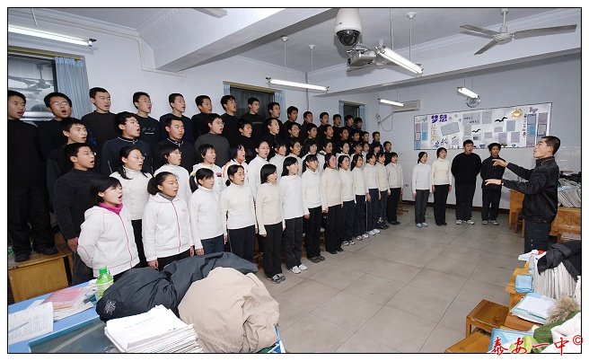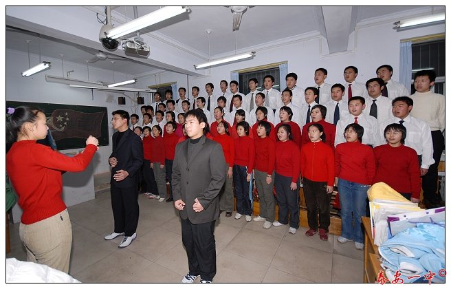 歌声阵阵,红旗飞扬。今天下午高一年级部的全体同学在自己熟悉的教室里唱起了嘹亮优美的歌曲,飞扬的歌声传遍了校园,将学校艺术周推向了又一个高潮。