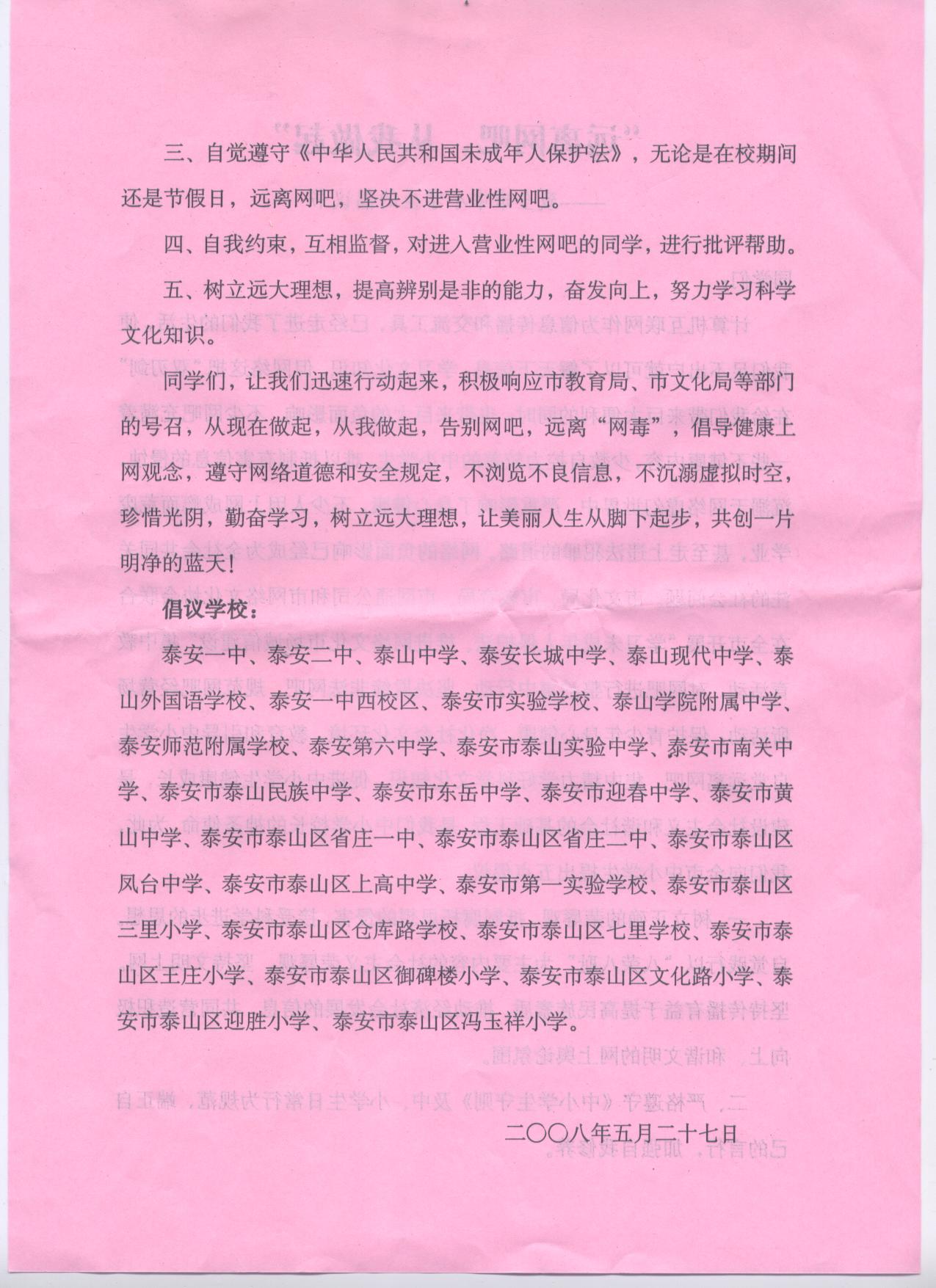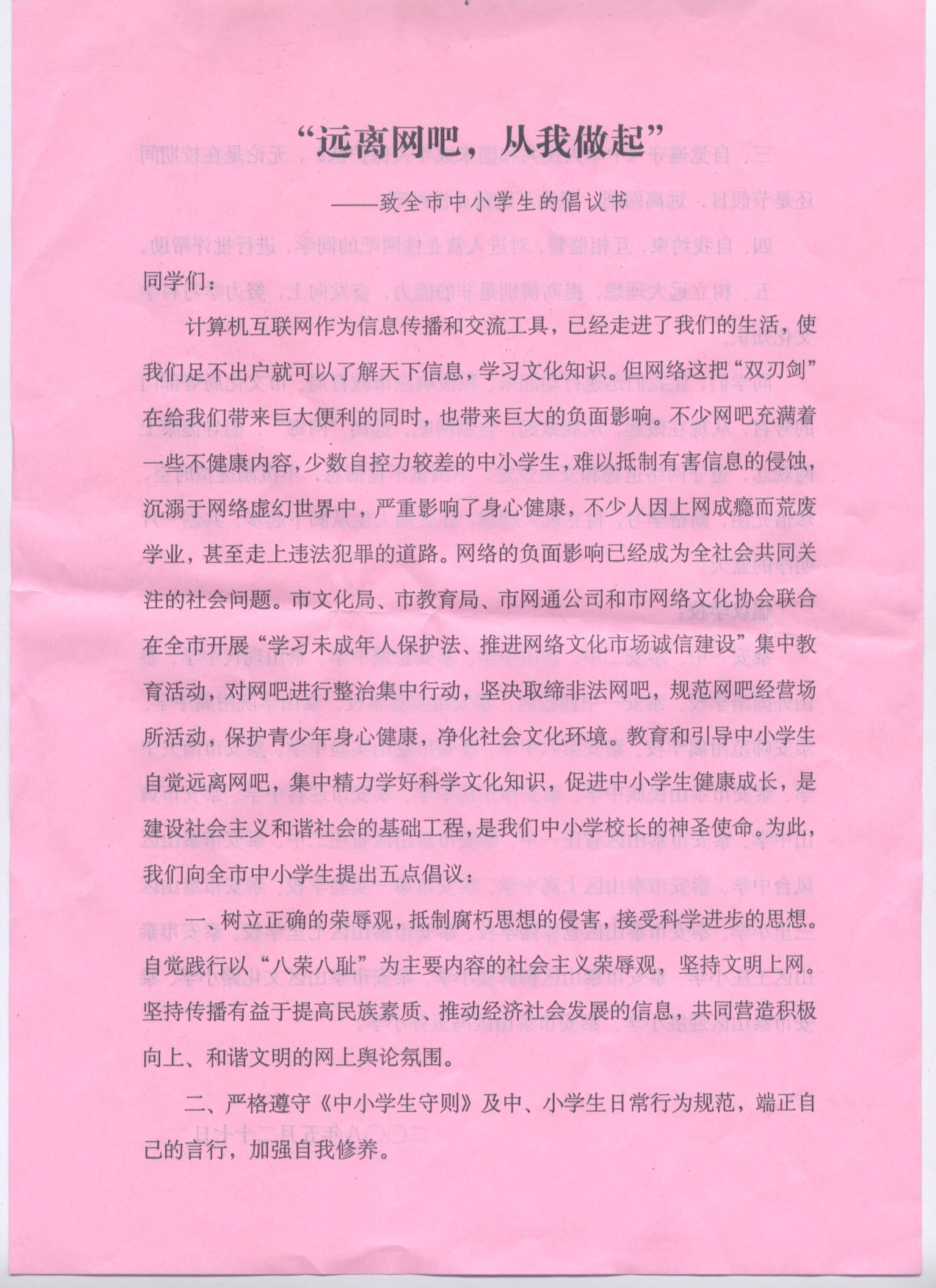"远离网吧,从我做起"-----致全市中小学生倡议书