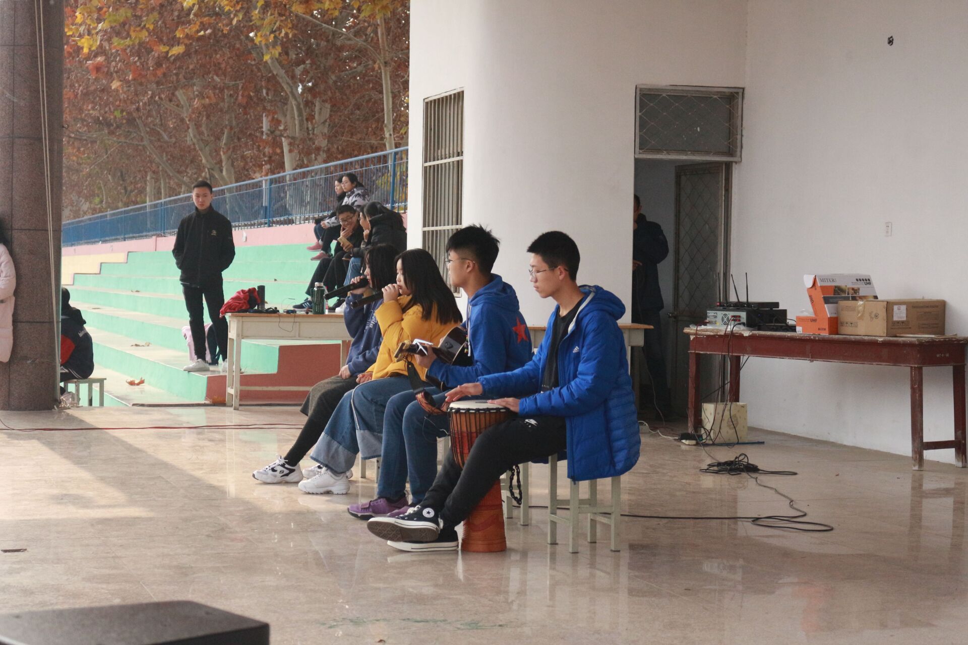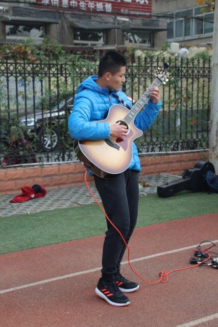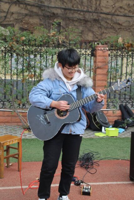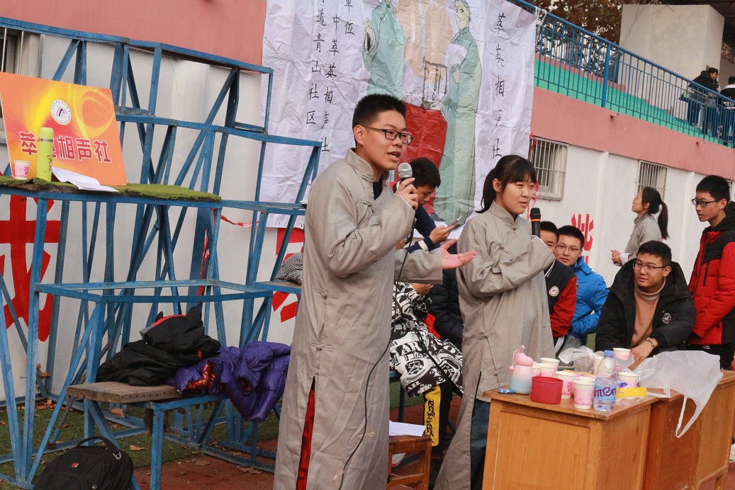 我校学生社团人才济济:来自let go音乐社的阚月曾获全国吉他指弹大赛第一名,她为我们演奏了有“断弦神曲”之称的《thunderstruck》,赢得台下阵阵掌声。来自萃英相声社的陈文哲身穿长袍走上台来,妙语连珠地为我们带来评书《三英战吕布》,古老的三国故事在他的表演下变得鲜活生动起来,同学们纷纷为他喝彩。