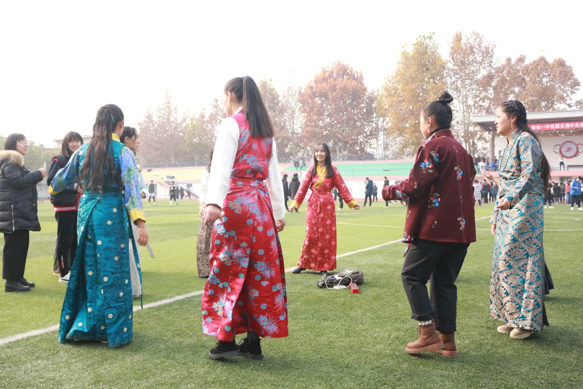 台下活动也多姿多彩:藏文化社团的藏族同学身着藏族服饰载歌载舞,用藏文书写明信片赠与内地同学,彰显民族团结与同学友爱。