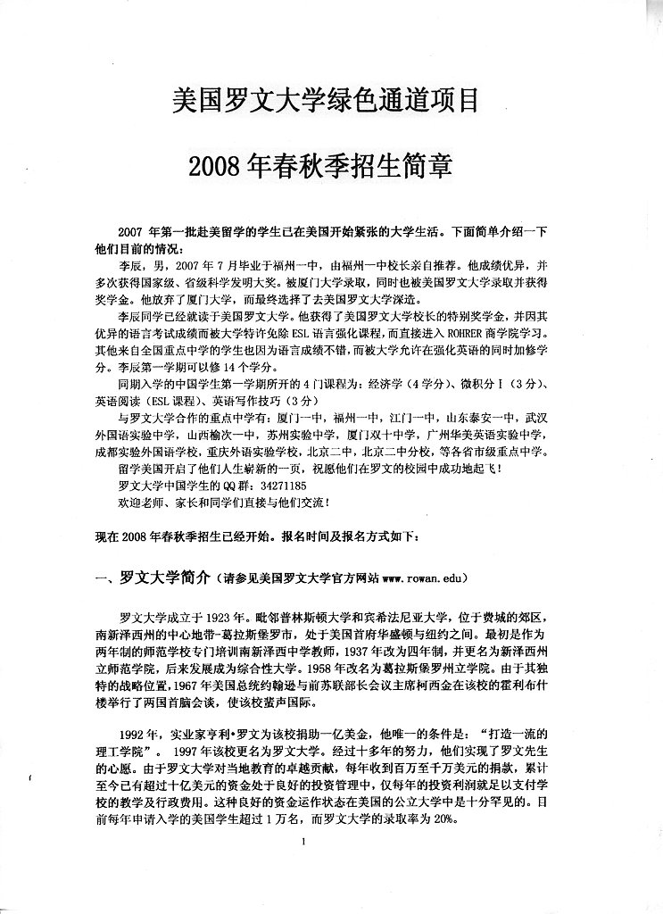 美国罗文大学2008春秋季招生简章