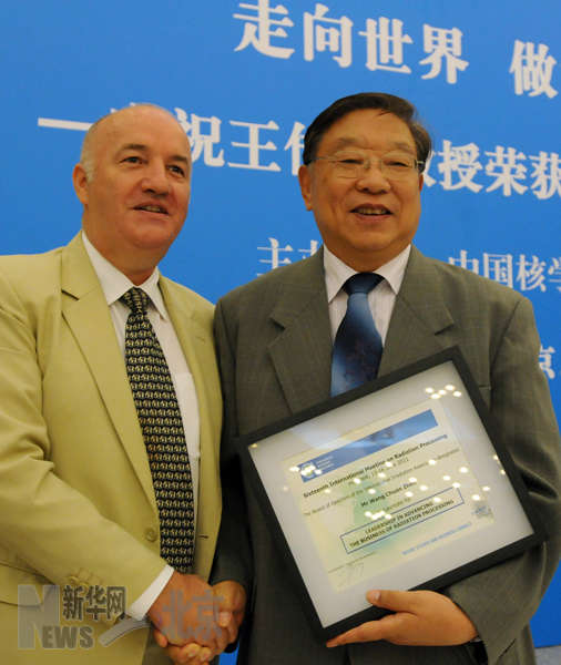 7月22日,中国核学会、中国同位素与辐射行业协会在北京人民大会堂举办发布会,庆祝王传祯教授荣获国际辐射加工领域的最高荣誉——劳伦斯奖。今年6月中旬,中国著名的同位素与辐射专家、北京三强核力辐射工程技术有限公司董事长王传祯教授在加拿大蒙特利尔市召开的第十六国际辐射加工大会上,被国际辐射联合会授予劳伦斯奖。这是中国在国际辐射研究领域第一位获奖学者。王传祯教授近40年潜心同位素与辐射研究与应用,在推动辐照加工产业化应用和辐照装置的安全中作出了杰出贡献。