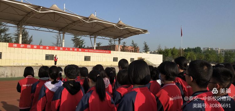 国家安全,不仅关乎国家利益,而且关系到每个公民的切身利益。为贯彻落实习近平总书记提出的“总体国家安全观”,提高中学生关于国家安全的法律意识,依法履行自身维护国家安全方面的职责和义务,4月19日,泰安一中新校区2019级全体师生齐聚学校西操场,举行“维护国家安全,共筑人民防线”主题升旗仪式。