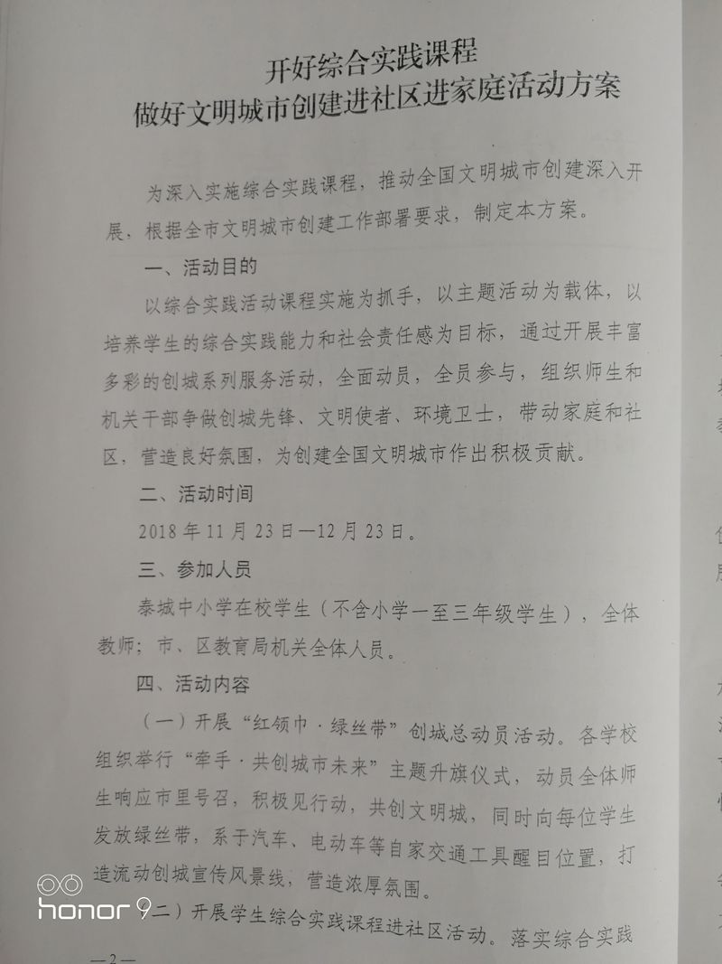 市教育局开展综合实践、文明创建进社区进家庭的通知