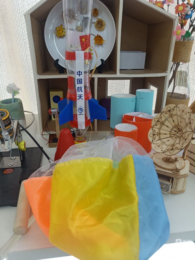 通用技术创意设计现场展示的学生作品各式各样,有投球器、火箭模型、创意台灯、纸板吉他、液压挖掘机、木制板凳、笔筒,、温控排风警示系统……可谓是“八仙过海,各显神通”,这些创意无限的精美作品融入了同学们天马行空的想象力和创作力。这是一场充满“奇思妙想”的创意设计展,也是一场精美绝伦的“艺术场”,不同的创意在这里交织出火花。